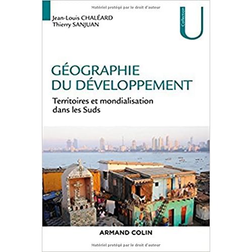 Qu’est-ce que la géographie du développement ? Une seule étude des pays dits "des Suds" ? Ou bien plutôt une approche théorique sur les mécanismes territoriaux du développement, ses processus, ses résultats socio-économiques ? Les nouveaux équilibres mondiaux comme les urgences sociales et environnementales nous invitent à repenser cette approche. Inverser le regard, penser autrement la globalisation, depuis les Suds, telle est l’ambition de cet ouvrage. Celui-ci se compose de quatre parties : après une première partie consacrée aux héritages du développement, il aborde les grands processus de la mondialisation des Suds, puis leurs dynamiques socio-spatiales internes. Il interroge enfin leur place dans le monde aujourd’hui, à travers une typologie inédite. Un ouvrage illustré de nombreuses cartes originales, de tableaux et d’exemples précis proposés sous forme d’encadrés. Avec la cartographie d'Olivier Ninot, docteur docteur en géographie, spécialiste des transports en Afrique, ingénieur de recherche au CNRS.Broché=272 pages. Editeur =Armand Colin (7 juin 2017). Collection =Collection U. Langue =Français. ISBN-10=2200614780. ISBN-13=978-2200614782. Dimensions du produit=16 x 1,8 x 24 cm. Moyenne des commentaires client =Soyez la première personne à écrire un commentaire sur cet article. Classement des meilleures ventes d'AmazonGéographieSciences de la terre - Eau - EnvironnementGéographie et urbanisme=137.329 en Livres (Voir les 100 premiers en Livres) .zg_hrsr { margin: 0; padding: 0; list-style-type: none; } .zg_hrsr_item { margin: 0 0 0 10px; } .zg_hrsr_rank { display: inline-block; width: 80px; text-align: right; } n°198 dans Livres > Etudes supérieures > Université > n°746 dans Livres > Sciences, Techniques et Médecine > n°1639 dans Livres > Sciences humaines >.