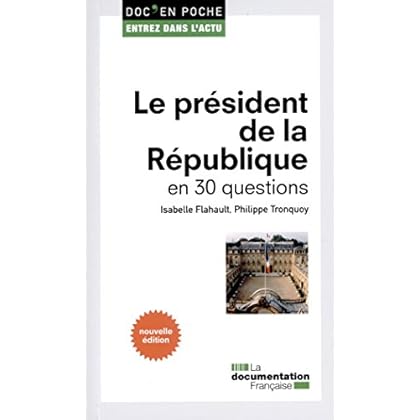 Depuis 1958, la fonction présidentielle a évolué au fil des réformes mais l''élection du chef de l'Etat au suffrage universel reste le rendez-vous électoral majeur de notre vie politique en même temps que le "marqueur" par excellence de nos institutions. Selon quelles conditions et avec quels pouvoirs ? Quelle est sa place au sein de nos institutions ? Pour sortir du brouhaha médiatique, "Entrez dans l'actu" vous apporte des informations objectives et factuelles sur le rôle et les attributions du président.Poche=104 pages. Editeur Édition =La Documentation Française; 2e édition (8 février 2017). Collection =Doc' en poche. Langue =Français. ISBN-10=2111452572. ISBN-13=978-2111452572. Dimensions du produit=18 x 0,8 x 11 cm. Moyenne des commentaires client =Soyez la première personne à écrire un commentaire sur cet article. Classement des meilleures ventes d'AmazonDroit publicDroit - Sciences juridiques=326.101 en Livres (Voir les 100 premiers en Livres) .zg_hrsr { margin: 0; padding: 0; list-style-type: none; } .zg_hrsr_item { margin: 0 0 0 10px; } .zg_hrsr_rank { display: inline-block; width: 80px; text-align: right; } n°819 dans Livres > Droit > n°12748 dans Livres > Etudes supérieures > Université >.
